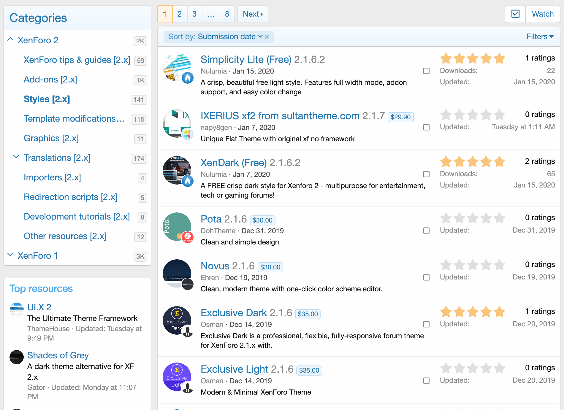 Hundreds of high-quality, pre-built styles are available to download from the XenForo Resources area.